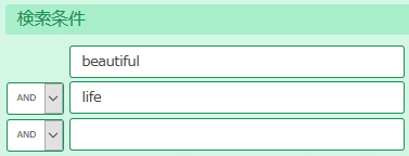 上図の例では「beautiful」と「life」を含む検索結果が表示されます。