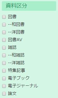検索対象となる資料の種類を指定して検索ができます。