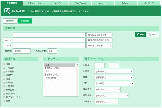 資料を所蔵している図書館・学部などを指定して検索ができます。